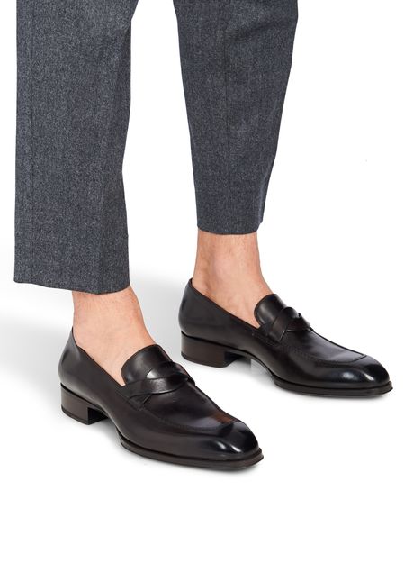These Elkan loafers feature a restrained and highly sophisticated design. Crossed inserts on the front assert their distinction in a stylish and traditional Tom Ford design.