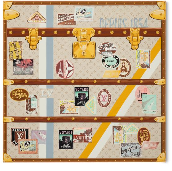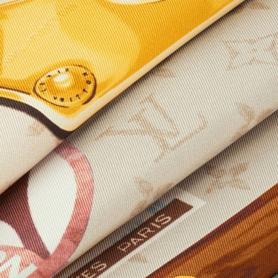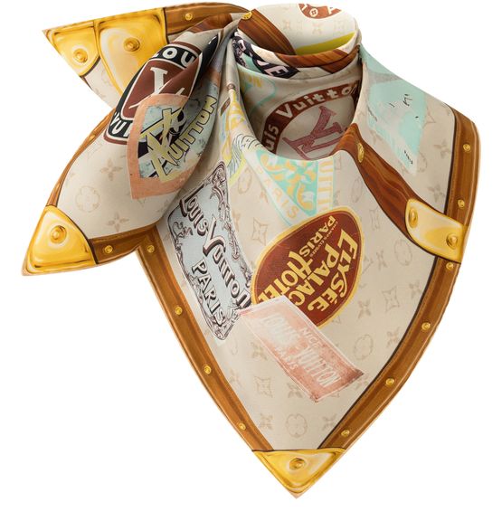 The artistic design of the Elysée Palace Hotel silk square is a celebration of Louis Vuitton’s luggage-making heritage. Created as a tribute to Paris’s first luxury hotel, the Elysée Palace, it depicts a vintage-style Monogram trunk with a colorful array of signature travel stickers inspired by the House’s history. A chic accessory, and an ode to the art of travel.