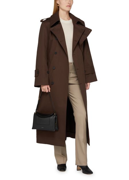 • Description : front buttoned closure, wraparound, lined, long, long-sleeved, tailored collar, side welt pockets, trench coats.