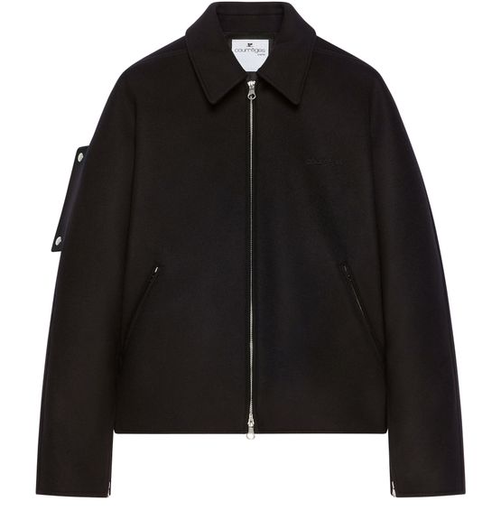 Reveal Courreges's bomber jacket, crafted from warm fabric for a sleek, short silhouette. The long sleeves and zipper closure offer comfort, while side welt pockets add practicality. Embroidered details elevate its modern appeal, making it a versatile choice for both casual and elevated looks.