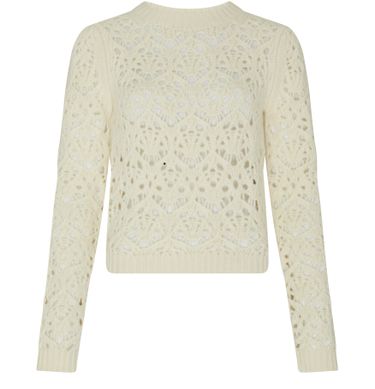 Chloé's Embroidered wool sweater showcases a regular length silhouette with long-sleeved elegance and a classic crew neck. Intricate embroidery adds a touch of sophistication, making it a versatile piece for both casual outings and more refined occasions. Experience warmth and style seamlessly intertwined in this luxurious wardrobe essential.