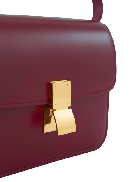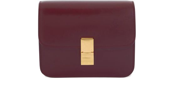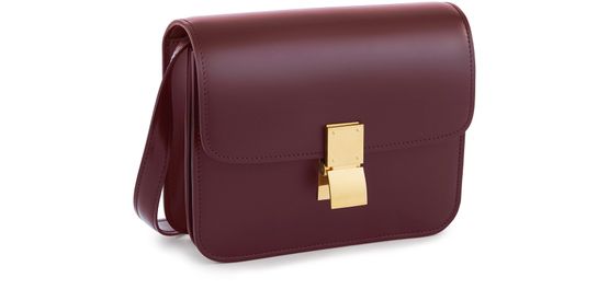 Celine presents the Classic Teen box calf leather bag in one of its flagship shapes. This model is offered here with a very angular metal clasp. Smooth leather gives shine to this leather accessory that brings an understated and elegant touch to your outfit. It can be worn over the shoulder or across the body thanks to its shoulder strap.