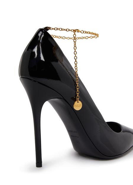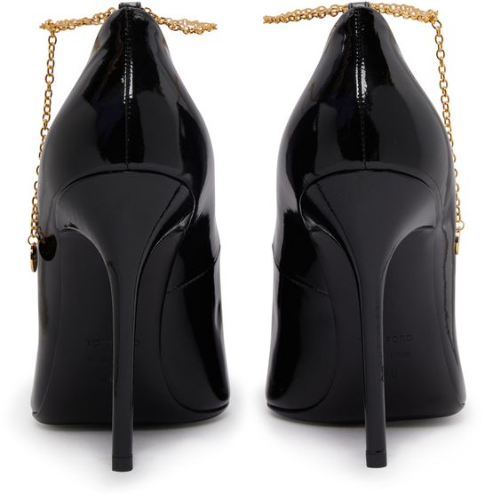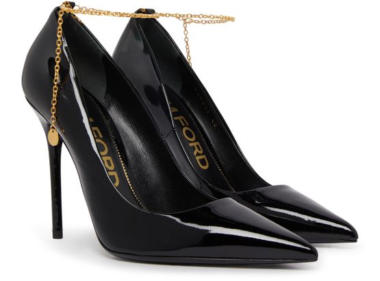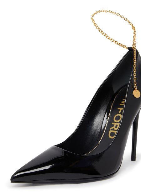 Tom Ford Distribution's Escarpins vernis pumps exude sophistication and elegance. Crafted from glossy patent leather, they feature a pointed toe and sleek shape. The very thin sole and stiletto heel add a touch of glamour to any outfit. Perfect for making a statement at any event or special occasion.