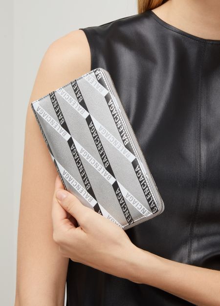 A true piece of urban fashion, the "Everyday" continental wallet pays homage to fashion brand Balenciaga's passion for streetwear. This accessory is printed with the brand's signature, which has a modern feel. Designed to give women a confidence boost, the practical aspect of the bag adds to its appeal. Opt for a head-to-toe look by teaming it with a pair of sportswear pants and the...