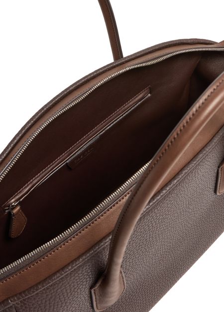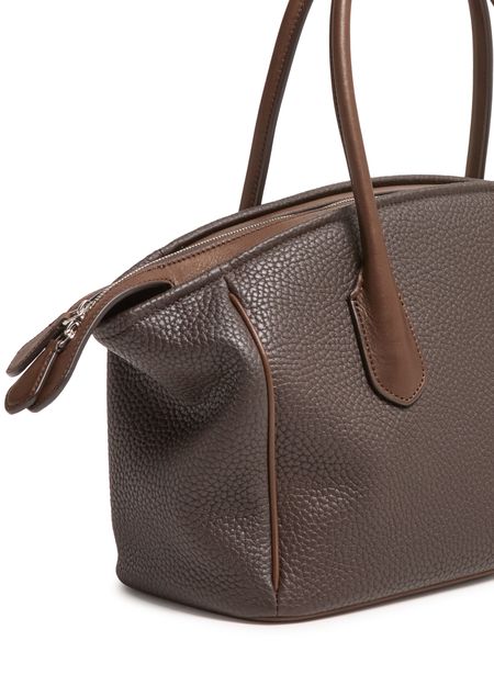 Reveal The Row's Ewa handbag, crafted from grained leather with double handles for versatile carrying. The spacious interior features a zippered pocket and visible topstitching, blending refined design with practical organization. A zip closure secures your essentials, making this tote a modern statement for everyday sophistication.