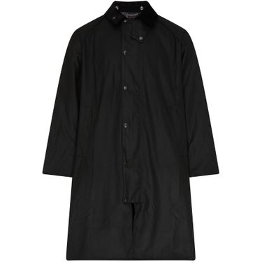 Barbour's Exmoor wax coat combines style and practicality with its short, long-sleeved design and buttoned concealed zipper closure. Featuring side welt pockets for convenience, it showcases an appliquéd logo and a logo at the back label, making it the ideal raincoat for those who appreciate timeless elegance and functionality.