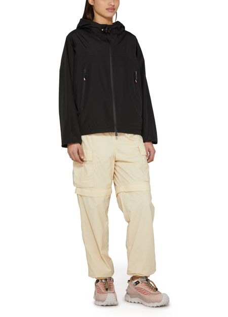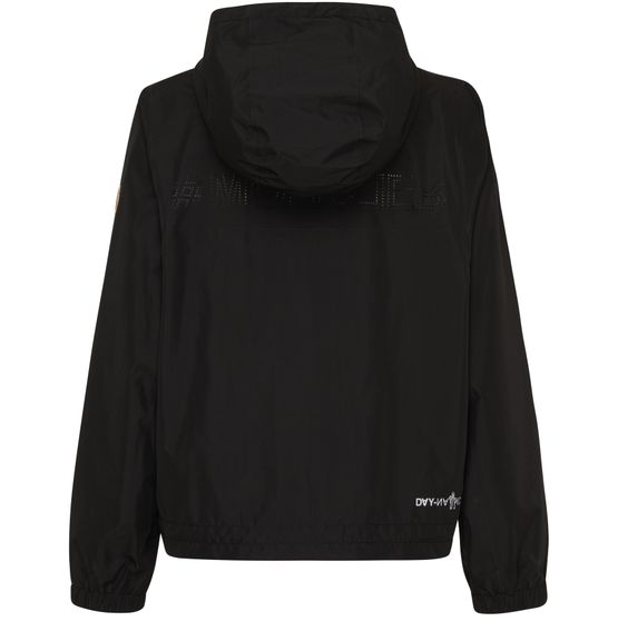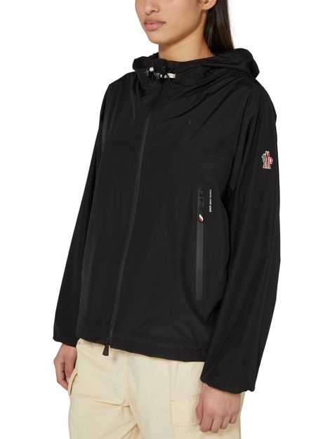 Moncler Grenoble's Fanes jacket is a stylish windbreaker with a short, long-sleeved design perfect for any adventure. It features a secure zipper closure, convenient side pockets, and distinctive patch details. The front logo, logo on the side, and logo at the back label add a touch of brand prestige, while the hood offers added protection.