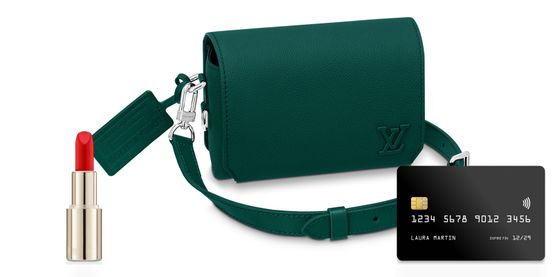 This Fastline Wearable Wallet is made from grained cowhide leather with palladium-color hardware. It features all the design codes of the Aerogram collection including bias-cut corners on the flap, and discreet tone-on-tone "LV" initials on the lower front corner. A removable and detachable strap gives carry options.
