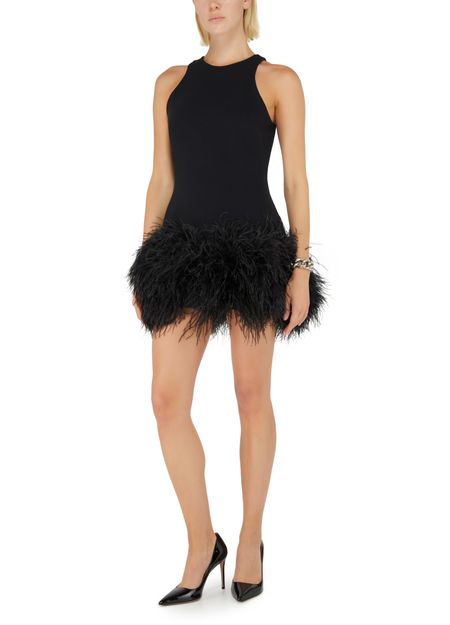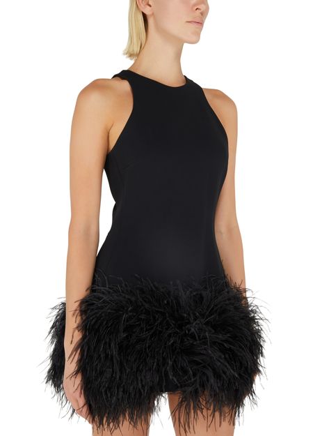 Feather hem sleaveless mini dress