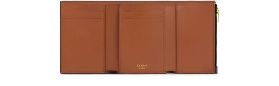 Celine's Victoire wallet in Triomphe canvas exudes elegance with its magnetic flap closure and visible topstitching. Adorned with a front logo in gold letters, it seamlessly blends style and functionality. Inside, the carefully designed slots for cards ensure organization, making it a perfect companion for the modern individual.