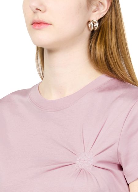 Loewe's fitted cotton t-shirt showcases a classic crew neck and short-sleeved design, perfect for effortless style. Its regular length offers versatility, while the visible stitching adds a touch of sophistication. An appliquéd logo and embroidered chest logo elevate this essential piece, making it a standout in any wardrobe.