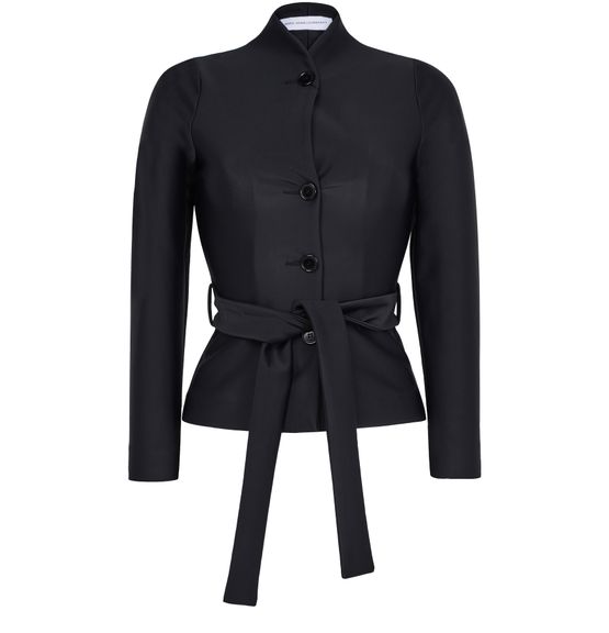 Embrace Marie Adam Leenaerdt Fitted Jacket Uniform with its high neck and long sleeves, offering a chic silhouette. The front buttoned closure and bow fastening add a touch of elegance. Perfect for casual outings, this versatile jacket blends seamlessly with your wardrobe.