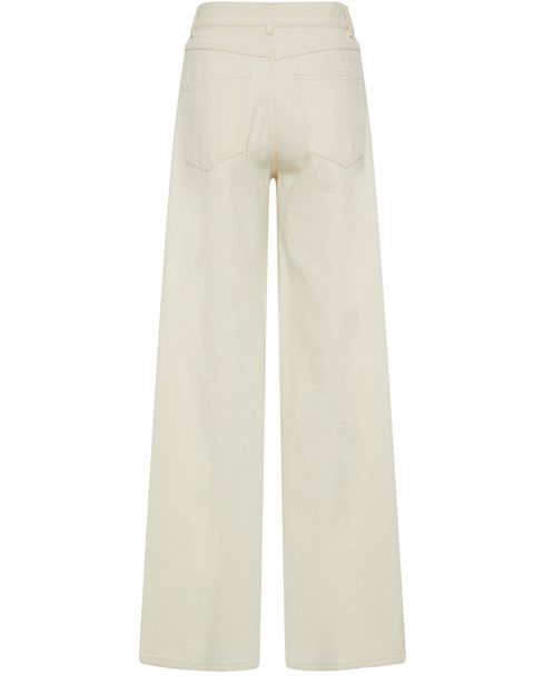 • Description : High-waisted pants, belt loops, five-pocket style, buttoned zipper closure, flared cut.