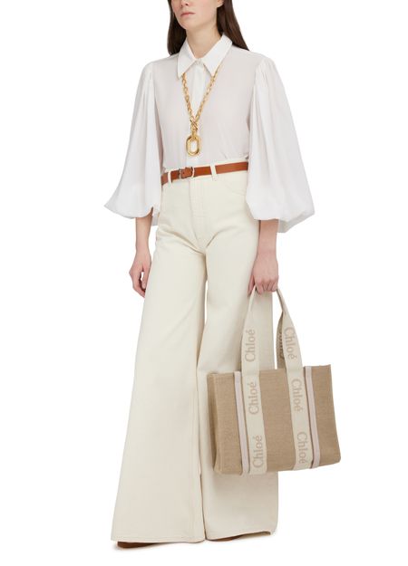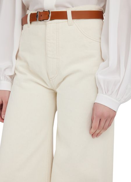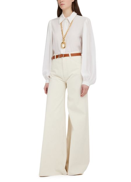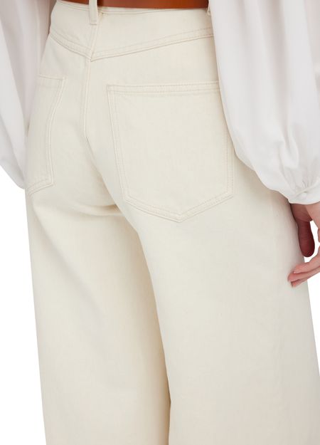 These Chloé flared jeans are high-waisted pants with belt loops and a five-pocket style. They feature a buttoned zipper closure and a flattering flared cut. Perfect for dressing up or down, these jeans are a versatile addition to any wardrobe.