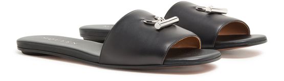• Description : visible stitching, sandals & slides, logo-printed insole, open round toe.