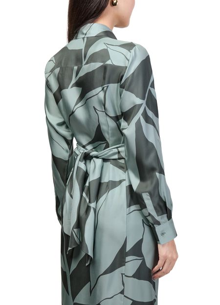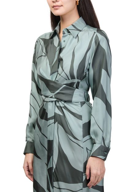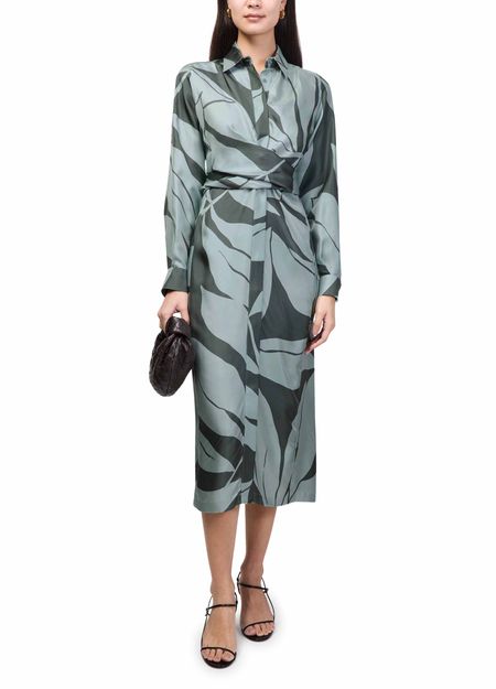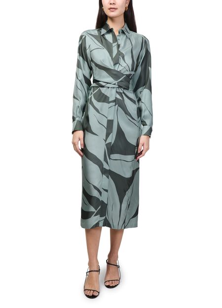 Reveal Max Mara's floral print midi dress, a refined shirt dress featuring a tailored collar and long, cuffed sleeves. The front buttoned closure and elegant midi length create a graceful silhouette, while the vibrant floral print adds a fresh, modern touch—perfect for versatile day-to-evening wear.