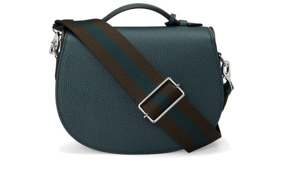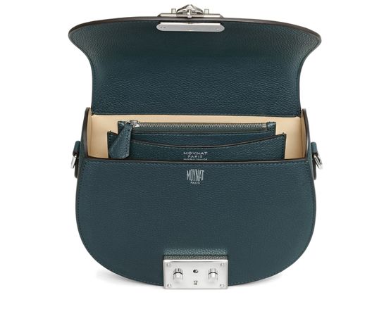 • Description : Handle, detachable strap, flap closure, silver clasp, carabiner, hand carried, worn on the shoulder or crossbody.