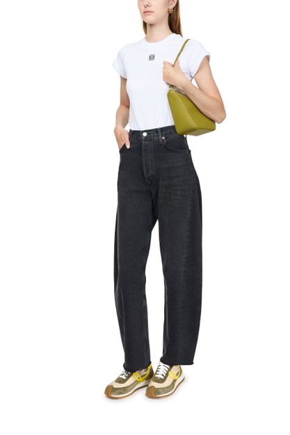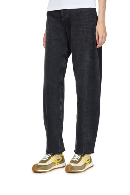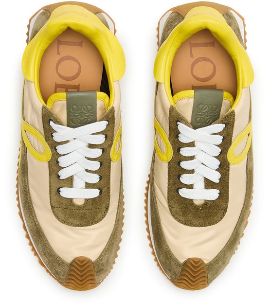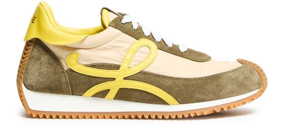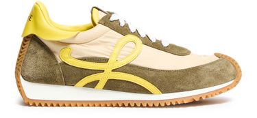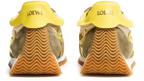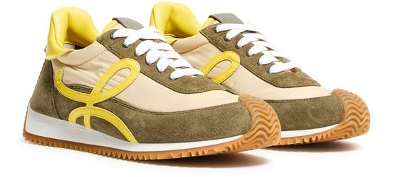 Discover Loewe's suede sneakers, where modern style meets functionality. Featuring a round toe design and a notched sole for extra grip, these running sneakers boast visible stitching and logos on the tongue and back, ensuring you stand out with every step.