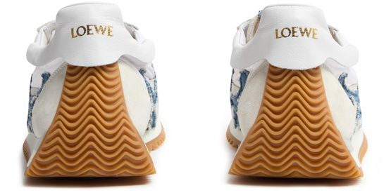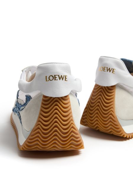 Celebrate Loewe's Flow Runner 2.0 in nylon and suede with its round toe and closed design. These sneakers feature a contrasting sole and visible stitching, providing a blend of style and durability. Laces and a strap ensure a secure fit, while the logo on the side, tongue, and back adds a touch of brand recognition.