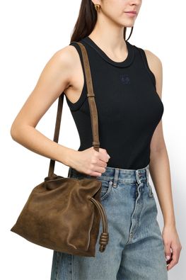 Reveal Loewe's Flow Runner 2.0 sneakers in nylon and calfskin, crafted with velvety suede and a low heel for all-day comfort. The round closed toe, running sole, and visible stitching combine with laces and a strap, while signature logos on the side and tongue add a refined finish.