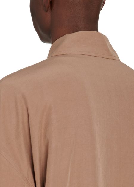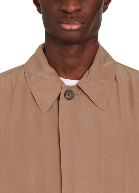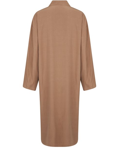 • Description : Three-quarter length coat, shirt collar, two front pockets, long sleeves, straight cut.