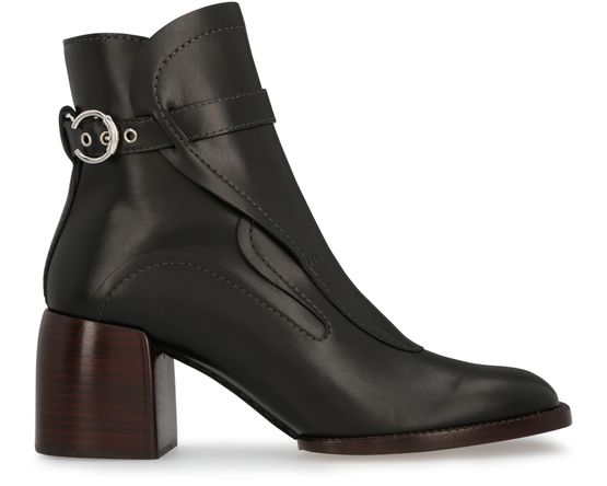 Covered in Chloé's signature circular cut-outs, the Gaile ankle boots are supported by a thick heel in a contrasting color that echoes the front sole.