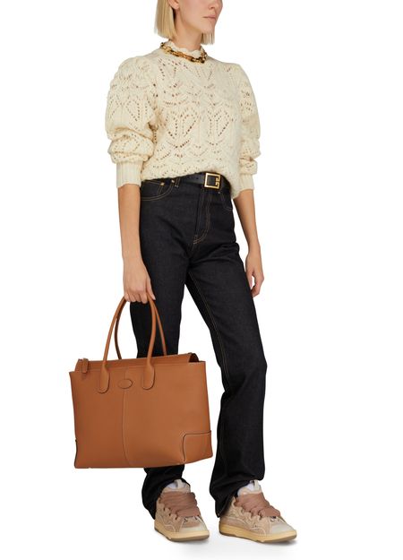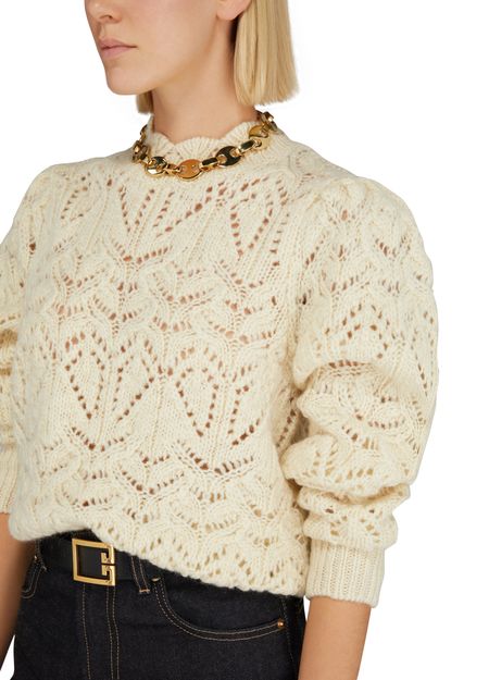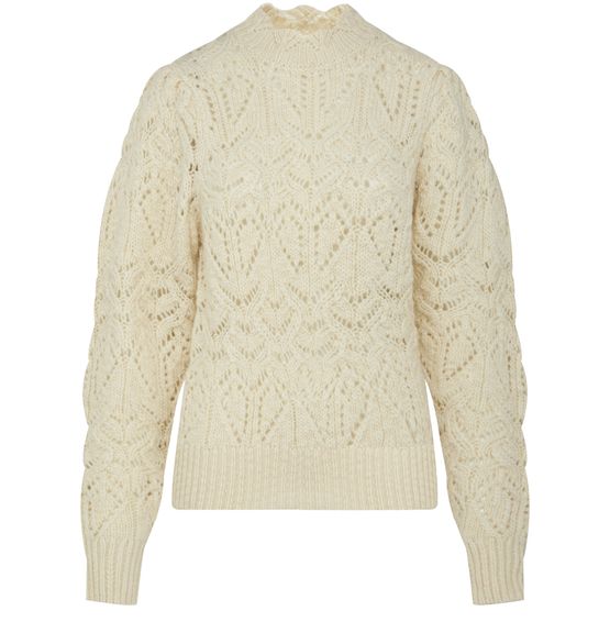 • Description : Knit sweater, long sleeves, crew neck, ribbed, open weave.