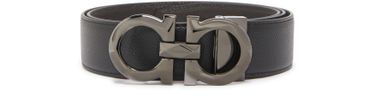 Ferragamo's Gancini reversible belt showcases a refined leather design, featuring a snap closure for effortless adjustment. Adorned with silver-tone hardware, the iconic logo buckle adds a touch of elegance. Perfectly worn on the hips, this versatile accessory effortlessly elevates any outfit, making it a timeless staple for discerning fashion lovers.
