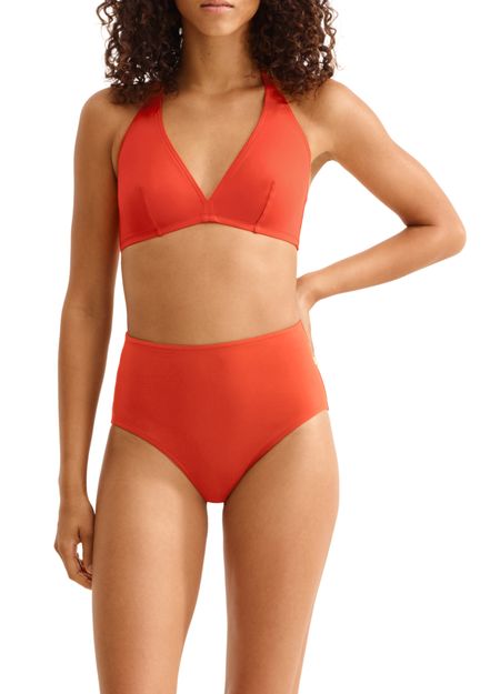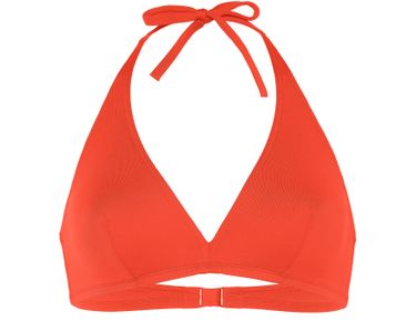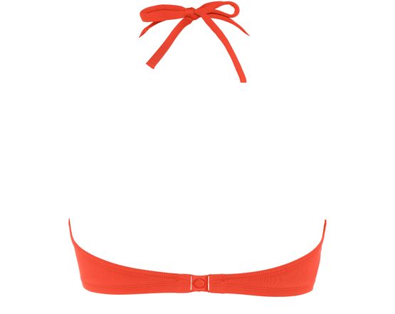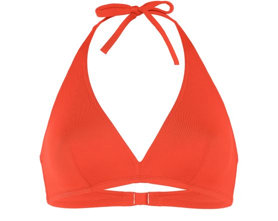 • Description : Full-cup triangle bikini top, halter tie spaghetti straps, bust darts, side stays, thin back.