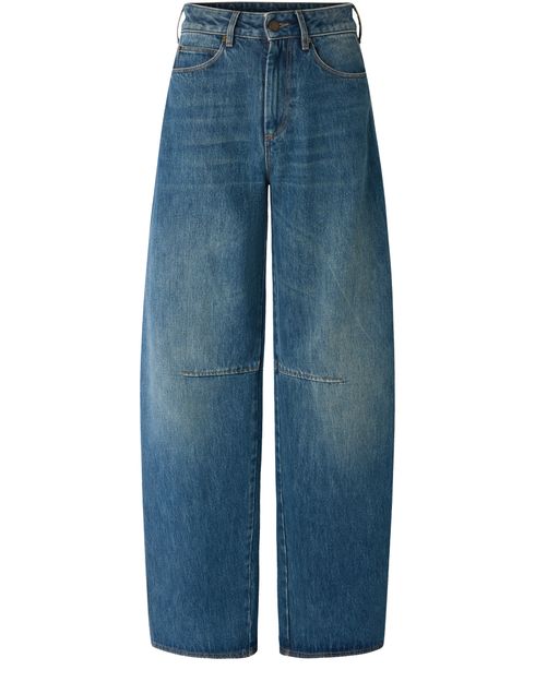 • Description : Faded denim, two front pockets, back pocket, visible stitching, buttoned zipper closure, belt loops, patch detail.