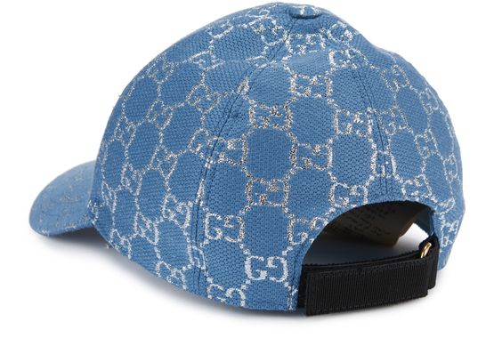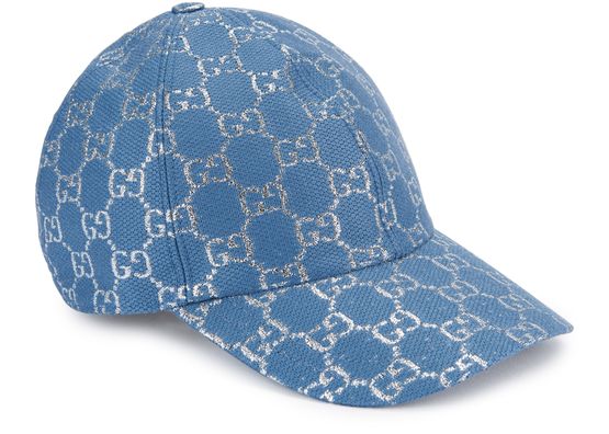 Mix street and feminine style by wearing the GG cap by Gucci, which uses the iconic Original GG pattern in iridescent form.