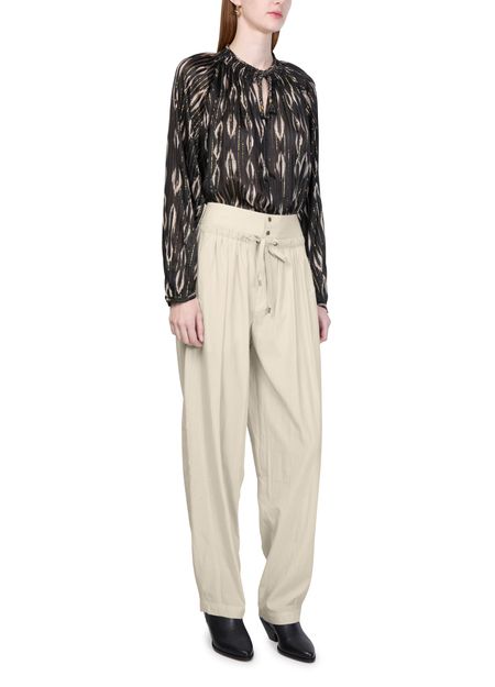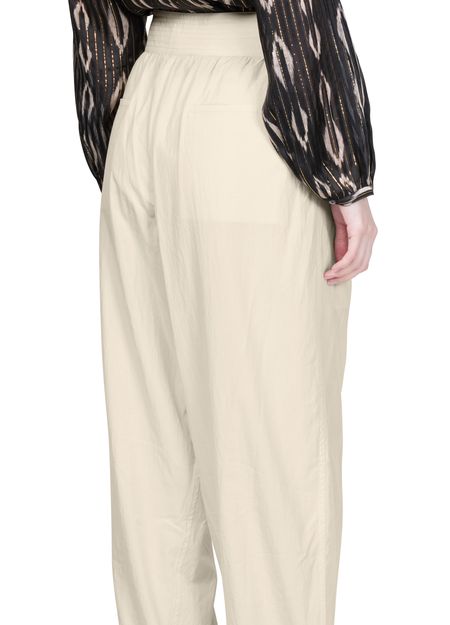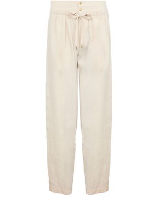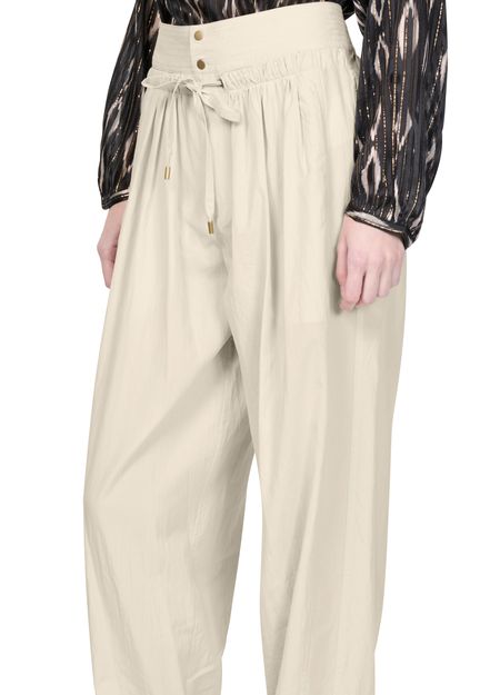 Isabel Marant's Gleen pants offer a loose fit with a low-waisted design, perfect for casual outings. Featuring a buttoned and concealed zipper closure, these ankle-length pants boast visible stitching, pleats on the front, and multiple pockets, including side pockets, back pocket, and welt pockets for effortless style and utility.