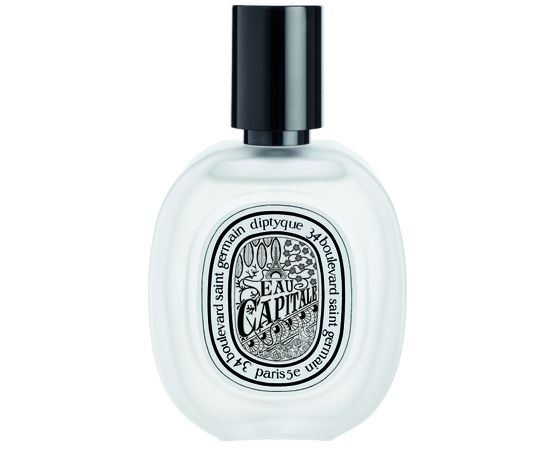 Eau Capitale Hair Mist Family: Chypre How is Paris to be celebrated? For diptyque, only chypre, a legendary accord with a thousand facets, could pay worthy tribute to the city of a thousand faces. A bouquet of roses verging on excess follows fresh bergamot spiced with pink peppercorns. Pepped with patchouli, free from moss it stands for liberty. An Eiffel Tower, roses, rolling calligraphy, a peacock with...