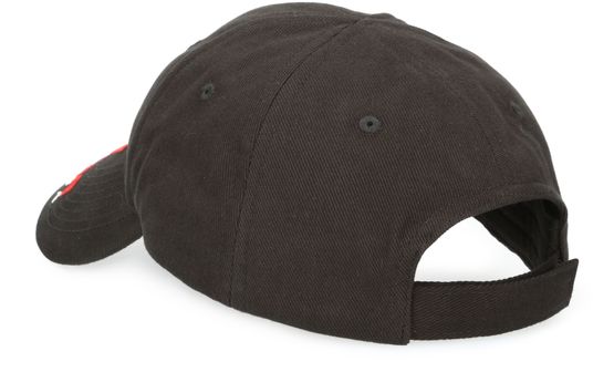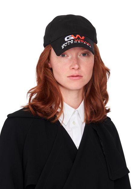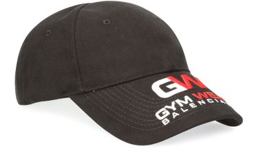 This Balenciaga gym cap has a simple, rounded design. This accessory is enhanced by a large contrasting inscription on the semi-rigid visor.