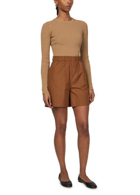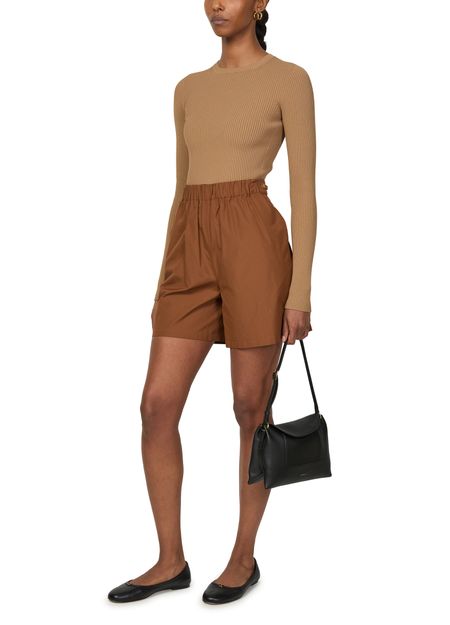 Max Mara's Haway cotton poplin shorts showcase a short length for effortless summer style. The elasticated waist ensures a comfortable fit, while visible stitching adds a refined touch. Perfect for casual outings or beach days, these shorts blend elegance with practicality, making them a must-have for your warm-weather wardrobe.