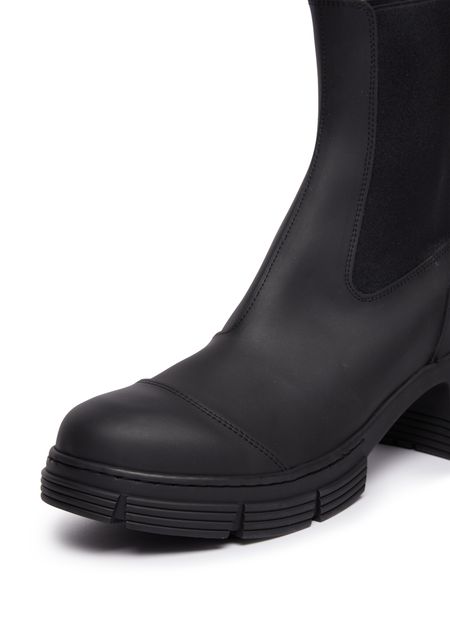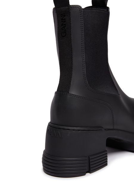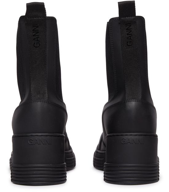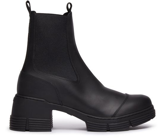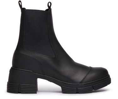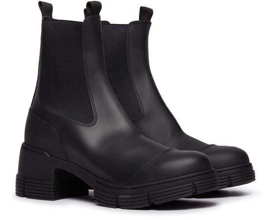 Ganni's Heeled City Boots are a stylish take on classic Chelsea boots. Featuring a closed, high-top upper with a round toe and medium block heel, these boots are easy to slip on and off thanks to the leather loop at the back. The notched sole and logo-printed insole add a touch of luxury to this pull-on design.