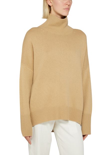 Lisa Yang's Heidi cashmere turtleneck sweater offers a luxurious knit experience with its loose fit and ribbed texture. Featuring a stylish rollneck, long sleeves, and a shorter front design, this sweater effortlessly combines comfort and elegance, making it a perfect choice for both cozy days and chic outings.