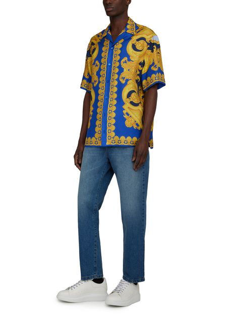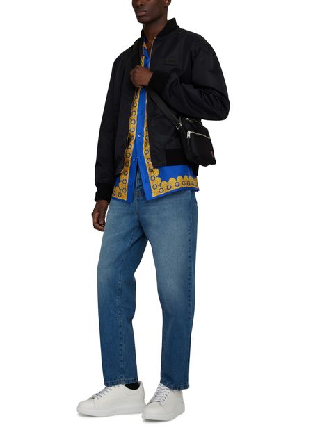 : The model is 6ft 1in / 1.86m tall and wears a size EU 50. This is an oversized style and designed to be worn loose. Take your usual size.