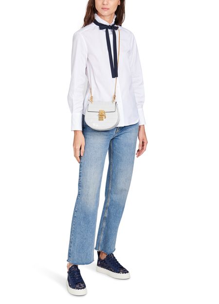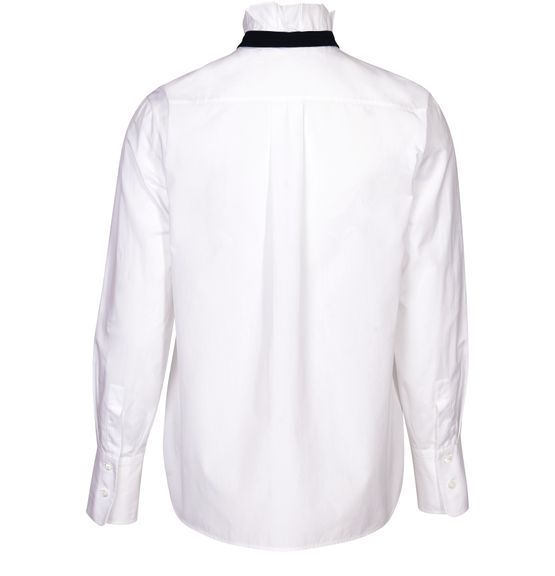 Designer Chloé's romantic essence is reflected in this blouse with a high ruffled neck. A delicate necktie provides contrast on the front, and can be worn tied or untied.