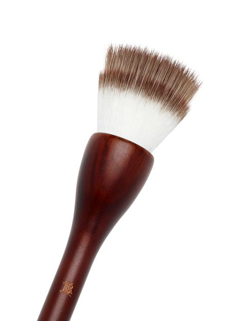 The highlighter brush is a large brush made of beech wood and vegan fibers to apply la Lumière. It allows a harmonious and diffuse application on the chick bones, cupid bow and the tip of the nose for a natural and glowy light halo effect.