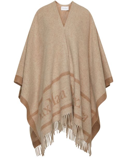 Max Mara's Hilde logo wool cape is a stylish and versatile piece with a long-sleeved design. It features a printed logo on the back label, adding a touch of branding. The cape is long in length, perfect for layering over any outfit. Fringe details give it a chic and trendy look.