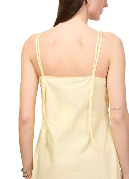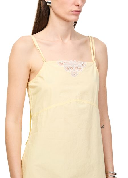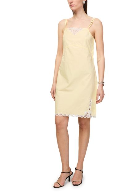 Reveal Soeur's sleeveless knee length sundress, featuring a rectangular neckline and delicate lace details. The side slit and shoulder straps add a modern edge, making this piece perfect for warm days and versatile styling. Experience effortless sophistication with every wear.