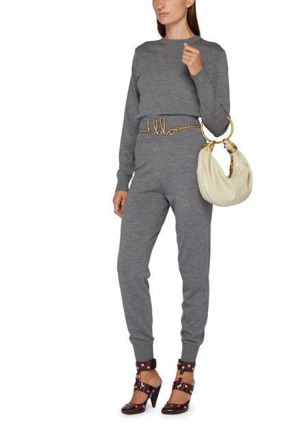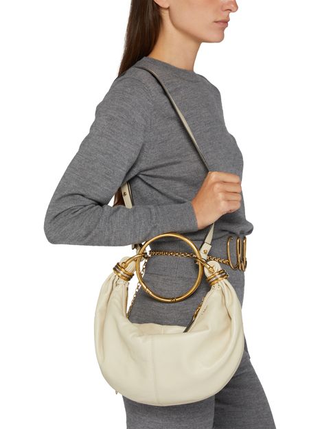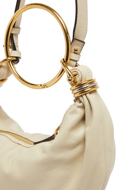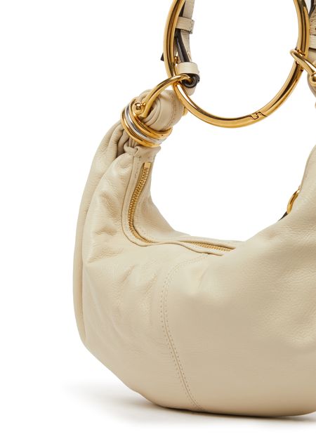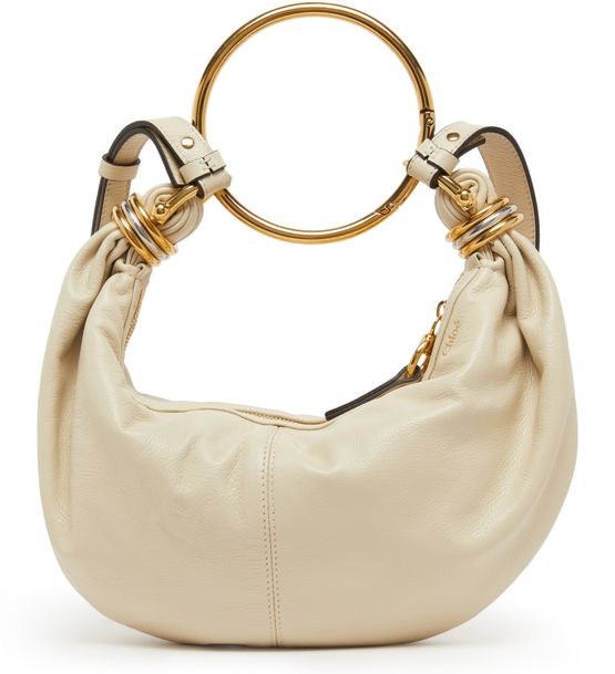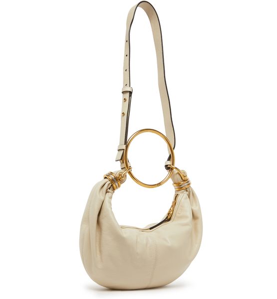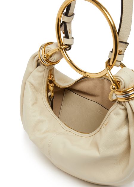 Chloé's Hobo bracelet bag showcases a stylish design with a secure zipper closure and a single compartment for essentials. Its gold finish adds a touch of elegance, while double handles and an adjustable strap allow for versatile wear. Interior patch pockets provide organization, complemented by visible topstitching for a refined look.