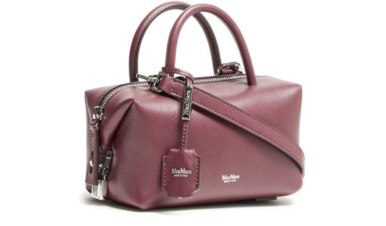 Reveal the Max Mara Holdall S handbag, crafted from smooth leather. This sleek mini bag features double handles and a thin adjustable, detachable strap for versatile wear. With visible topstitching, a front logo in silver letters, and silver finish, it’s both fashionable and functional, offering interior card slots and a single compartment with a zipper closure.
