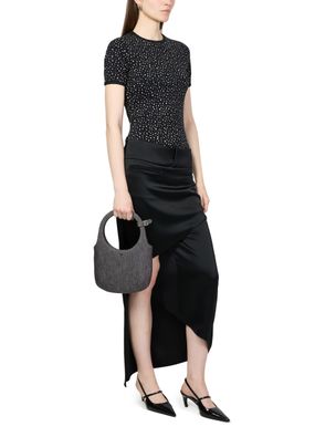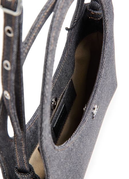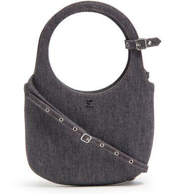 Description : magnetic closure, visible topstitching, front logo, shopper / tote bag, silver finish, single compartment, hand carried, worn on the shoulder, adjustable strap, interior pocket.