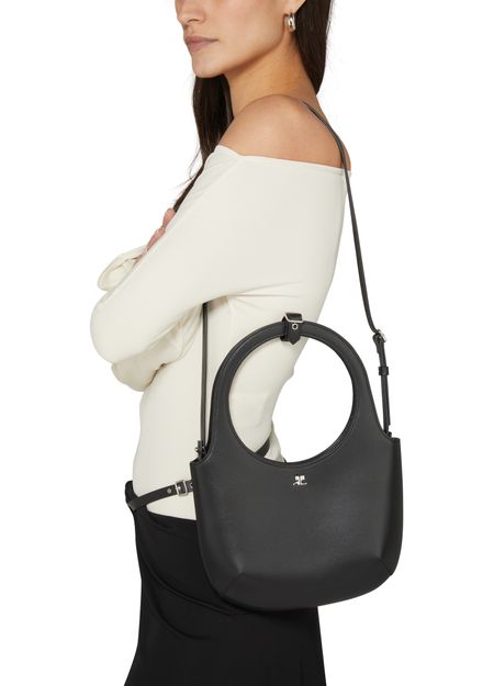 The Holy leather bag exudes a sleek and sophisticated vibe with its silver finish. Designed to be worn on the shoulder, this versatile accessory adds a touch of elegance to any outfit. The bag features a subtle metallic logo on the front, adding a hint of luxury to its overall design.