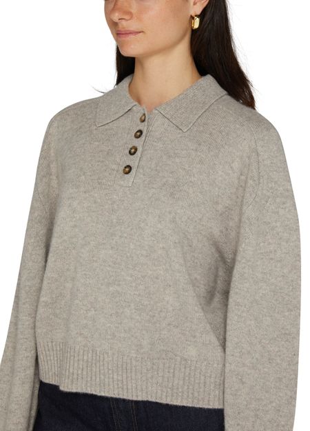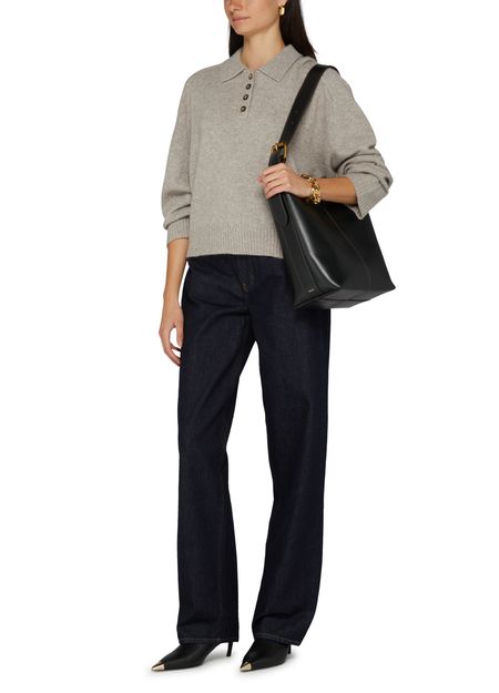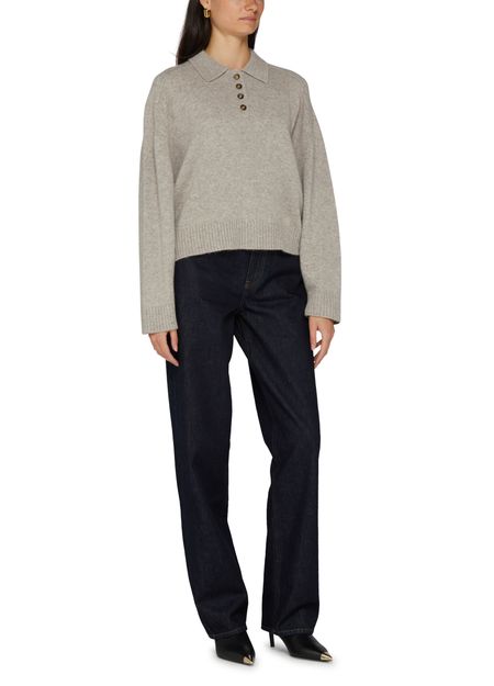 Loulou Studio's Homere cashmere sweater showcases a regular length silhouette with a front buttoned closure for effortless style. Its long-sleeved design offers warmth, while the appliquéd logo adds a touch of sophistication. A subtle logo at the back label completes this luxurious piece, perfect for any occasion.