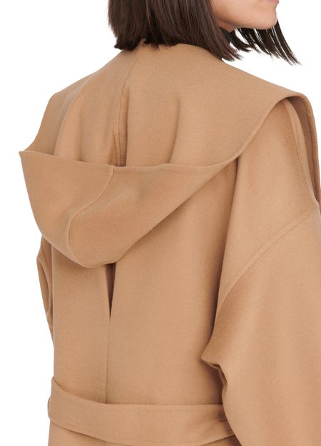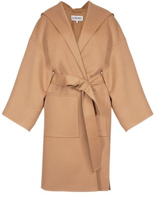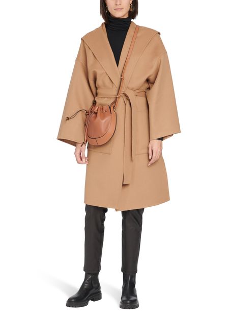 This belted and hooded coat is a sophisticated design from Loewe. The brand unveils an on-trend model with a loose and fluid cut, with a belt that elegantly emphasizes the waist.