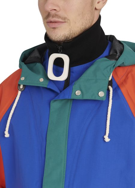 • Description : Hooded jacket, adjustable drawstring collar, long sleeves with patch pockets, concealed zip and press-stud fastening, multicolor print, large front pockets, sleeve details, geometric detail.