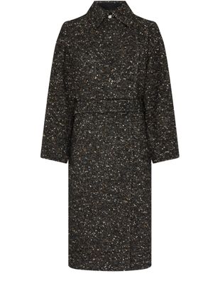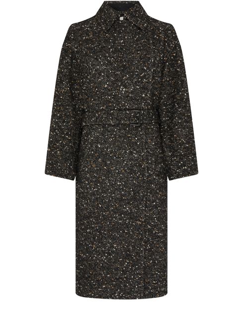 Etoile Isabel Marant's Horia long coat showcases a sophisticated long-sleeved design with a classic shirt collar. Its belted waist accentuates the silhouette, while the appliquéd logo at the back label adds a touch of elegance. Visible stitching enhances the structure, making it a perfect match for a printed midi dress with all-over print.